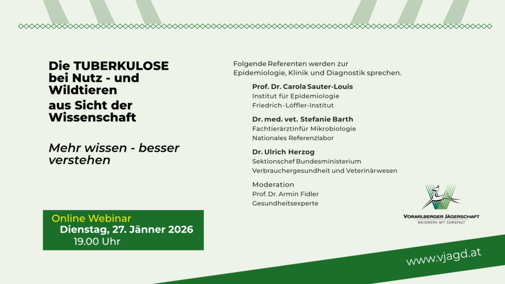 Im Rahmen einer außerordentlichen Jahreshauptversammlung des Verbands der Vorarlberger Jagdschutzorgane findet eine Fortbildungsveranstaltung für „Kundige Personen“statt.