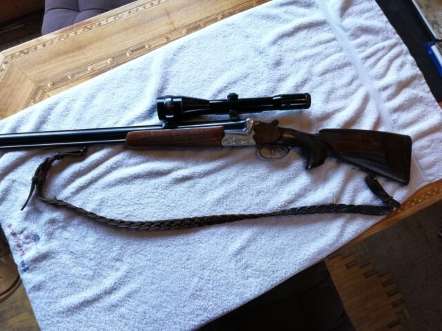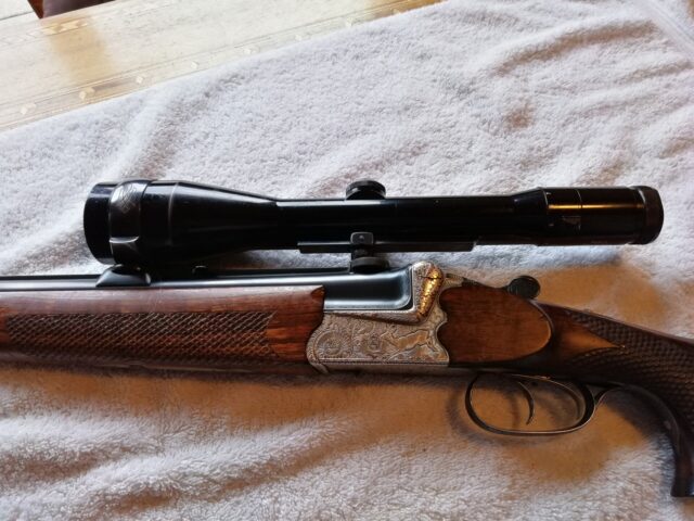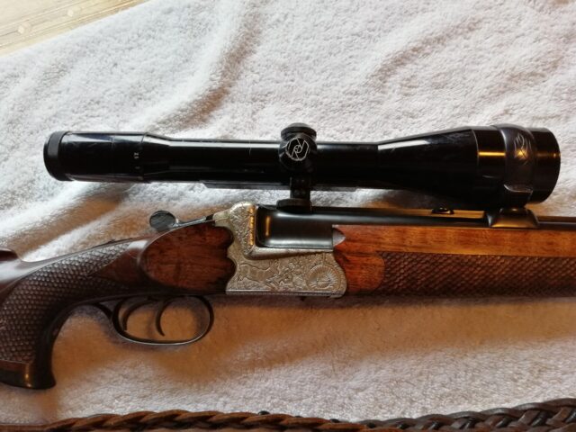 Verkaufe aus Verlassenschaft Ferlacher Bockbüchsflinte 6,5x57 und 12/76 kompl. Mit ZF Zeiss variabel 2,5x10 Absehen 4 Gravur Handgestochen von Margot Deuring Leichte Gebrauchsspuren Nur an EWB