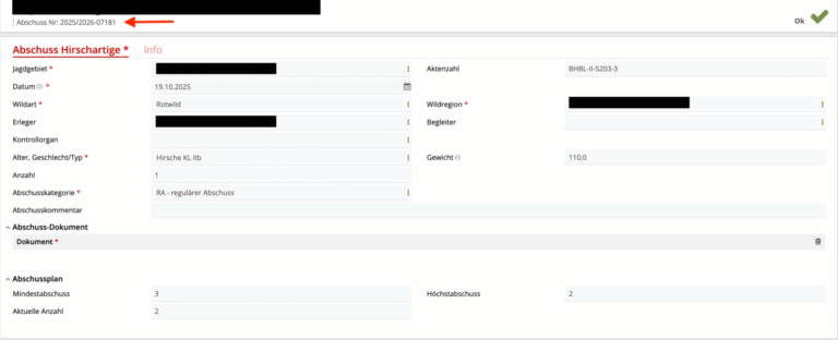 Für bereits eingetragene Abschüsse wurde im Zuge des Updates rückwirkend eine eindeutige Nummer vergeben.