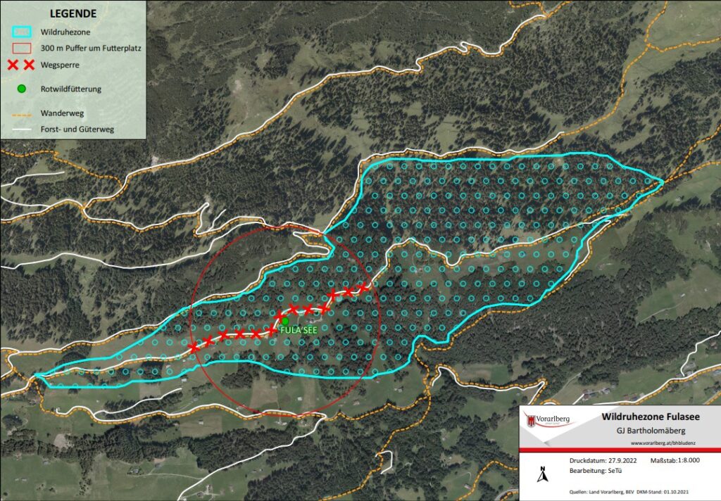 Die Wildruhezone gilt jedes Jahr vom 16. Dezember bis 15. April und ist derzeit bis April 2029 befristet. Grundlage ist eine Verordnung der Bezirkshauptmannschaft Bludenz nach dem